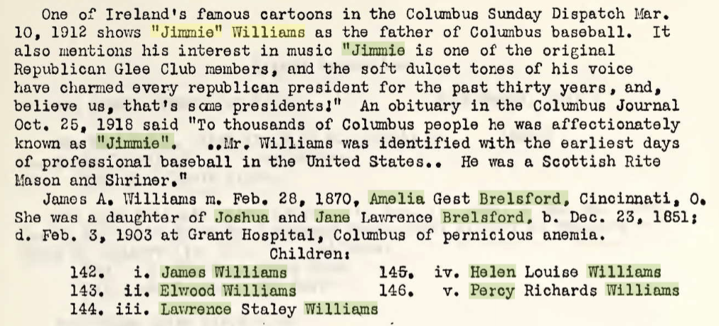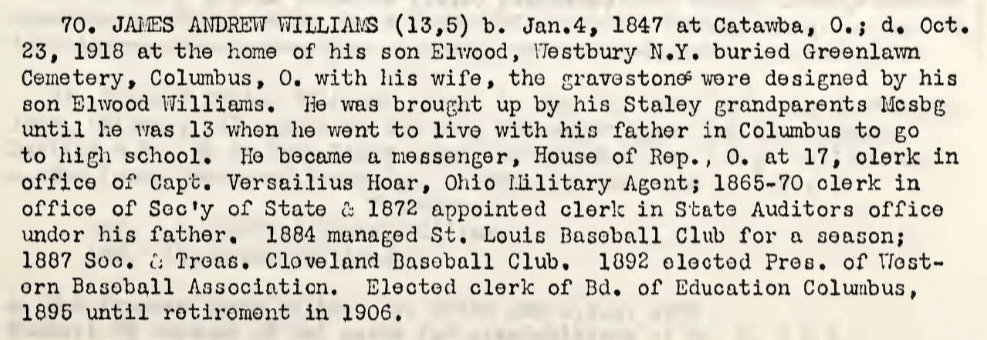 After that, Williams’ baseball life leaves the sports page and moves to the news pages as he becomes the clerk of the Board of Education for the state of Ohio in 1895, a role he would hold for more than a decade. Along the way, he (like his father) was an active member of the Republican Party. And he could sing – allegedly serenading several Republican presidents over his time as an active member in Ohio. At one point, he was put forward to be a state sentorial candidate, but elected office was not in Williams’ cards.
