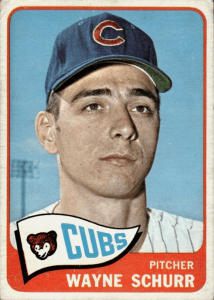 Schurr was a pitcher with the Cubs in 1964. I recognized his name because one of the odd elements of my baseball card collection is that I have pretty much every 1965 Cubs baseball card and Schurr was in that set.