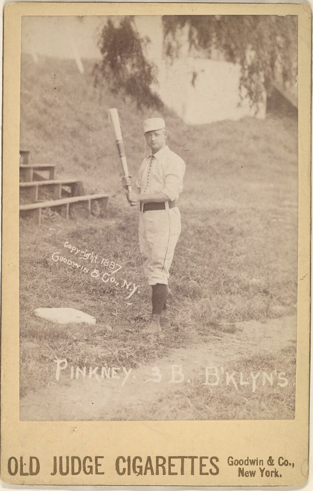 Pinkney was the original iron man, appearing in 578 consecutive games as a third baseman for Brooklyn between 1885 and 1889. Pinkney followed Brooklyn from the American Association to the National League, spending seven of his ten major league seasons there.
