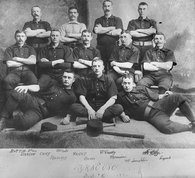 In 1890, Lyons was courted by the Syracuse Stars (photo above – Lyons is seated at far right), who were now members of the American Association. Previously a championship level team in the high minor leagues, Syracuse manager George K. Frazer found backing from local businesses and tried to compete at the highest levels of baseball. The team already consisted of major leaguers like Mox McQuery, Cupid Childs, Bones Ely and Dan Casey and looked to add other young talent.